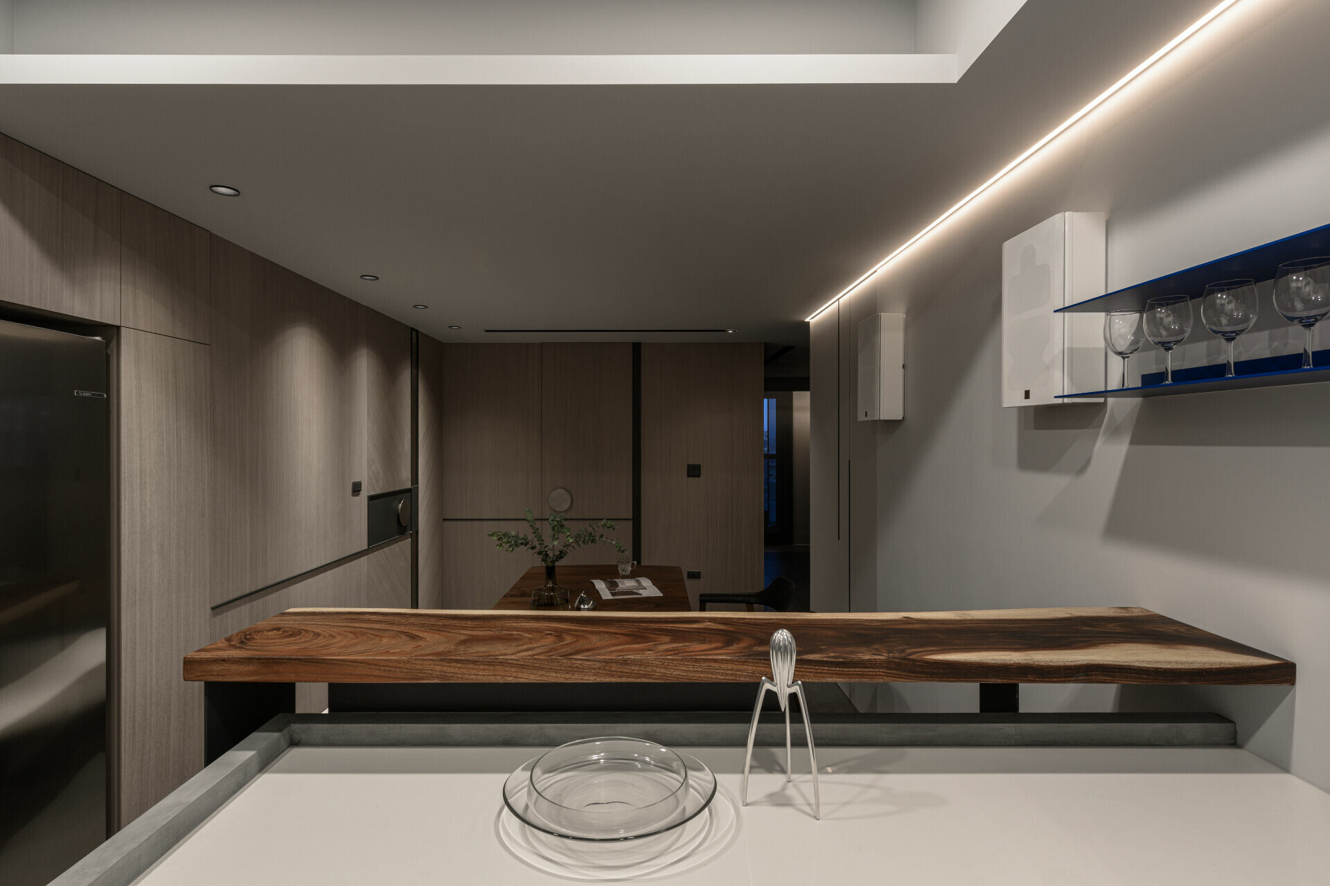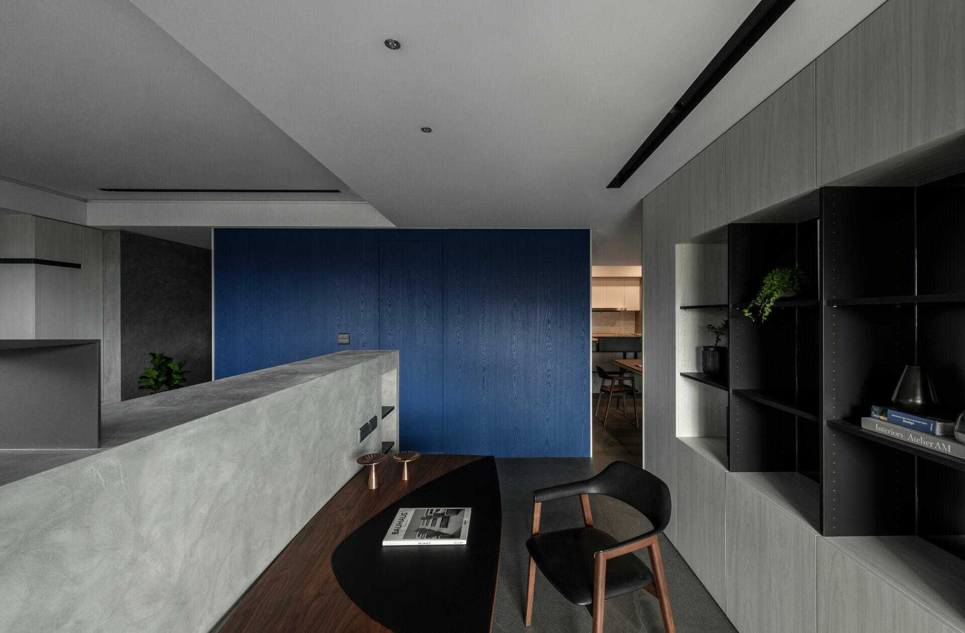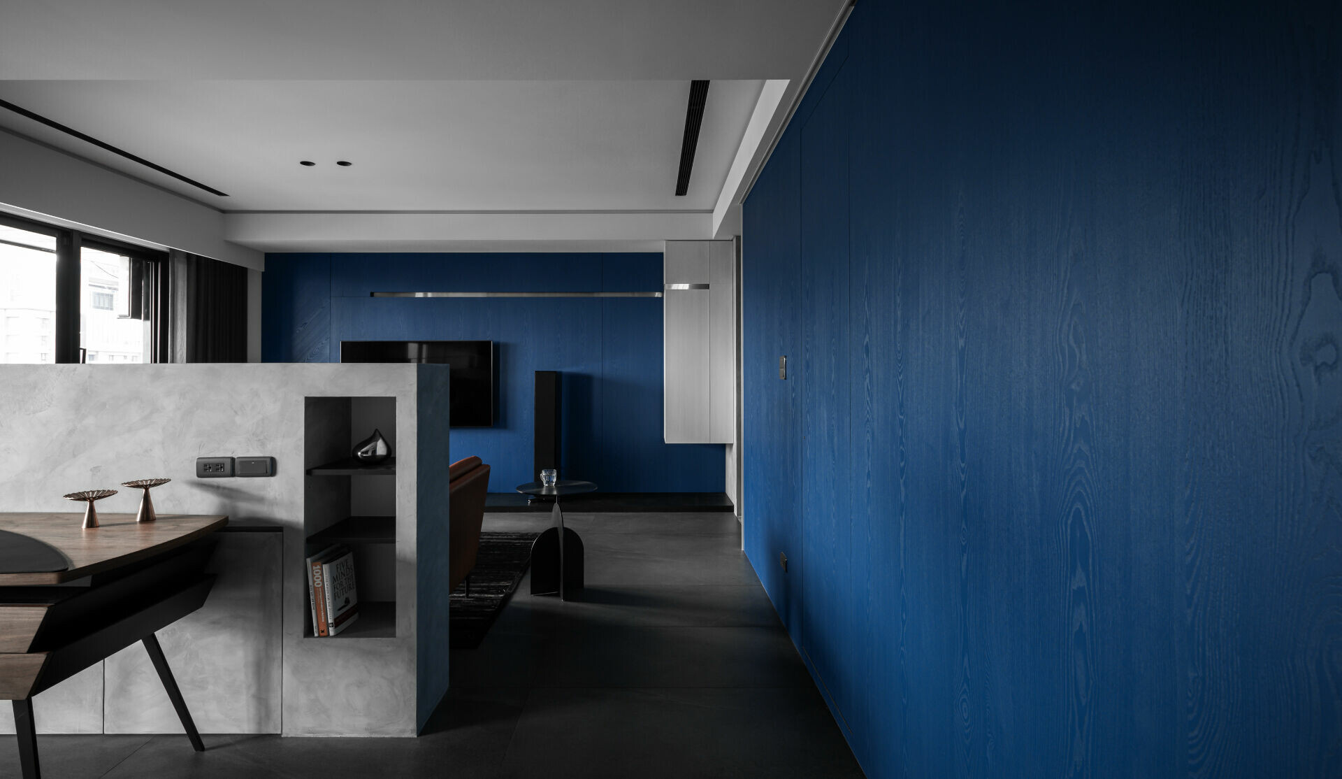 屋主訴求鮮明且富有個人品味的空間風格,並期待將深藍色大面積揮灑在主要的生活場域,