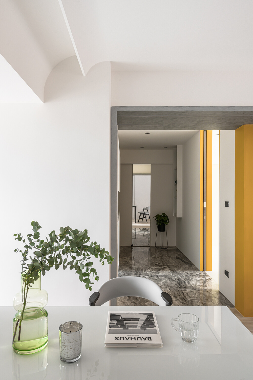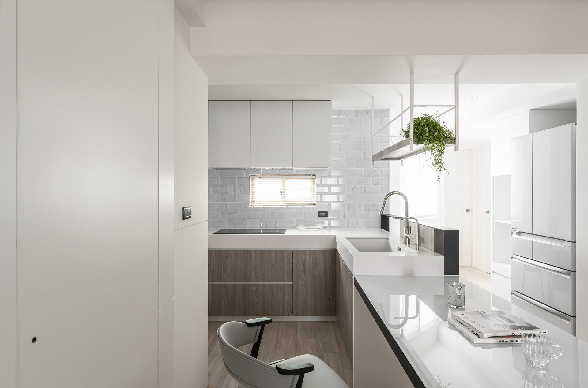 把自然的陽光景色,放置在恰好的位置,整體以白色為基調,