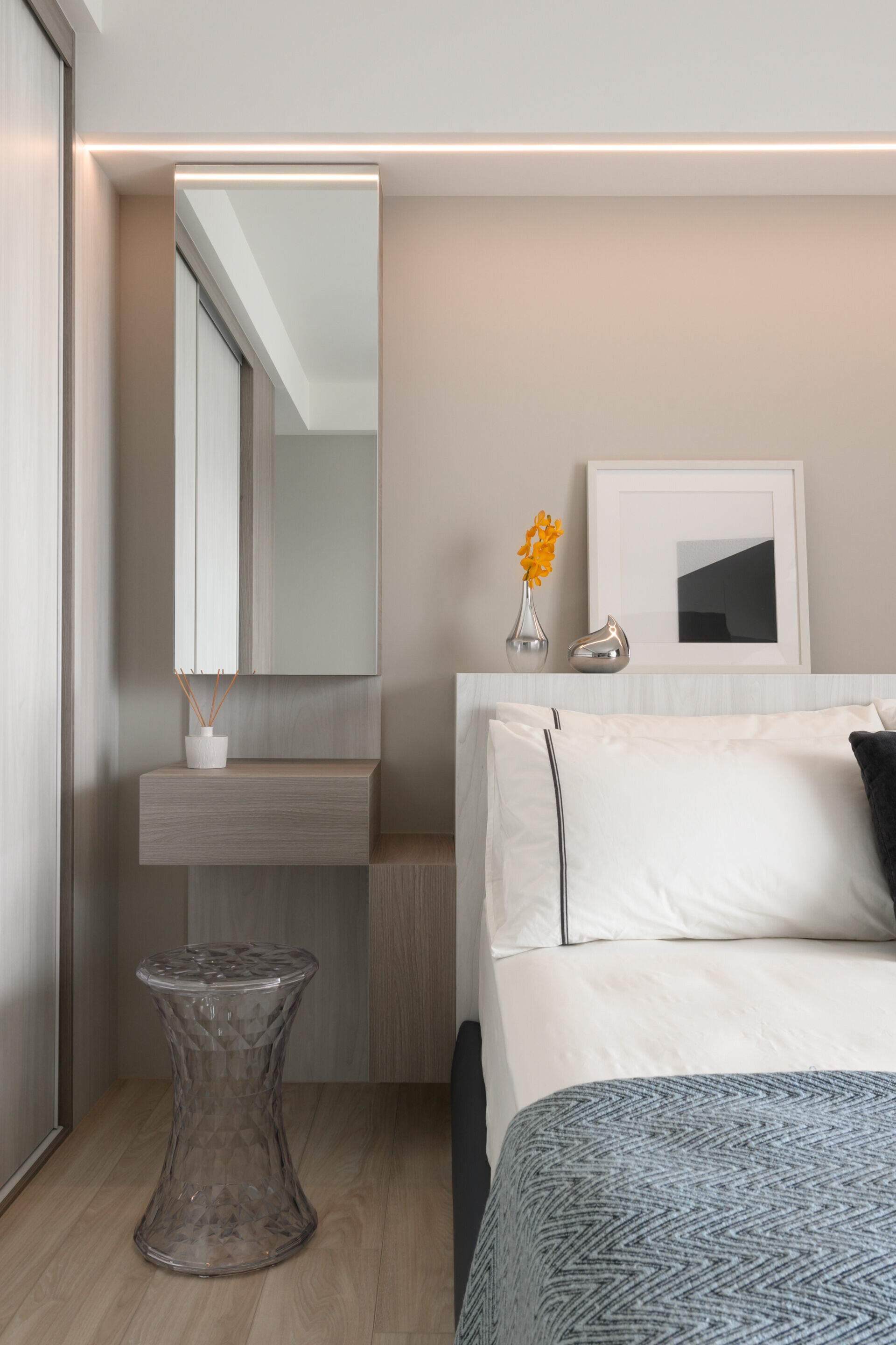 局部透過顏色、材質的表現,靜靜的沉澱出知性的溫度,