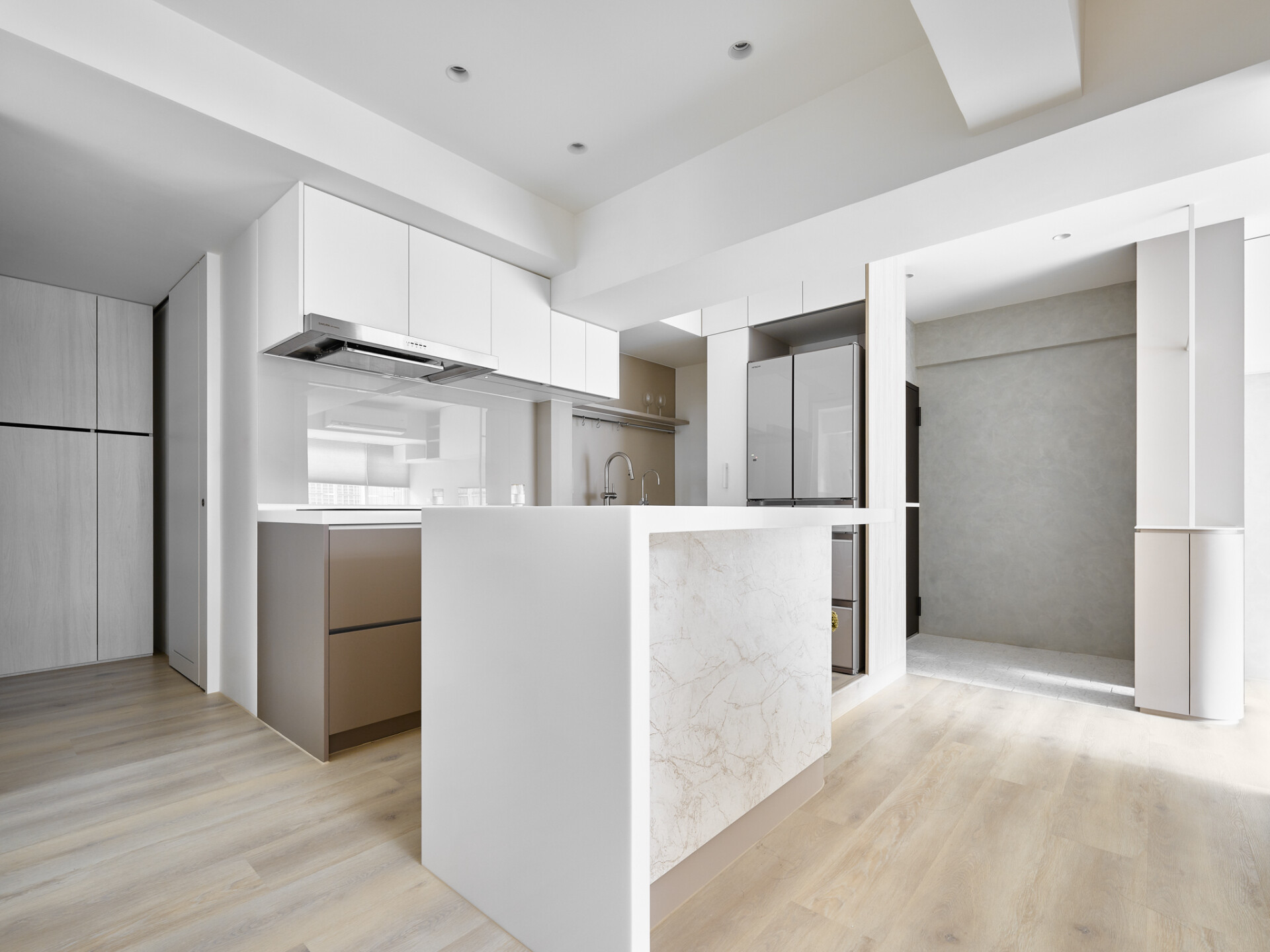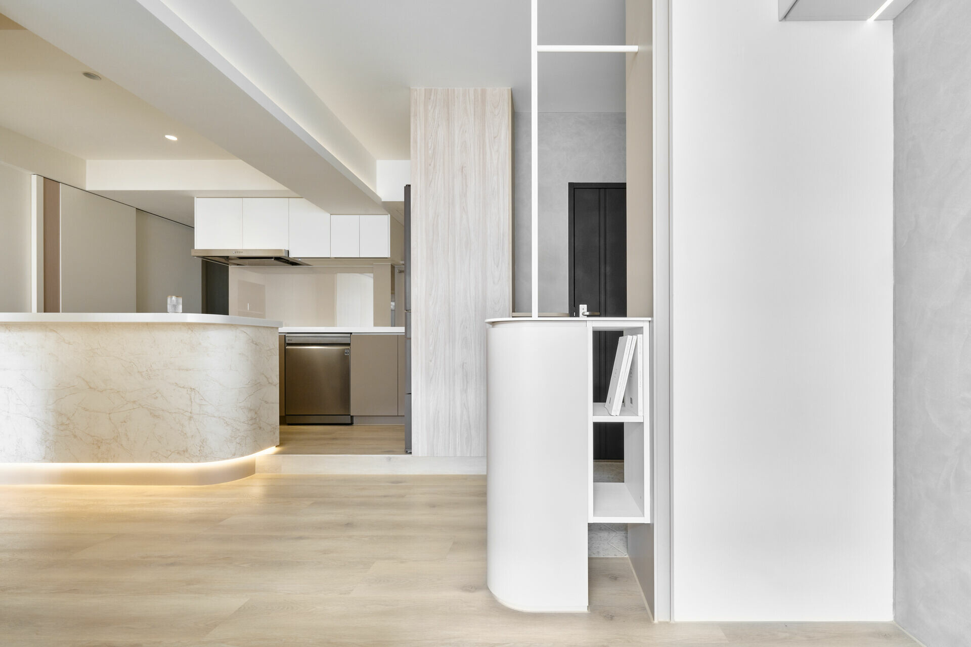 使光影與材質在空間中形成一幕幕可停留的畫面。公領域承接互動與相聚,